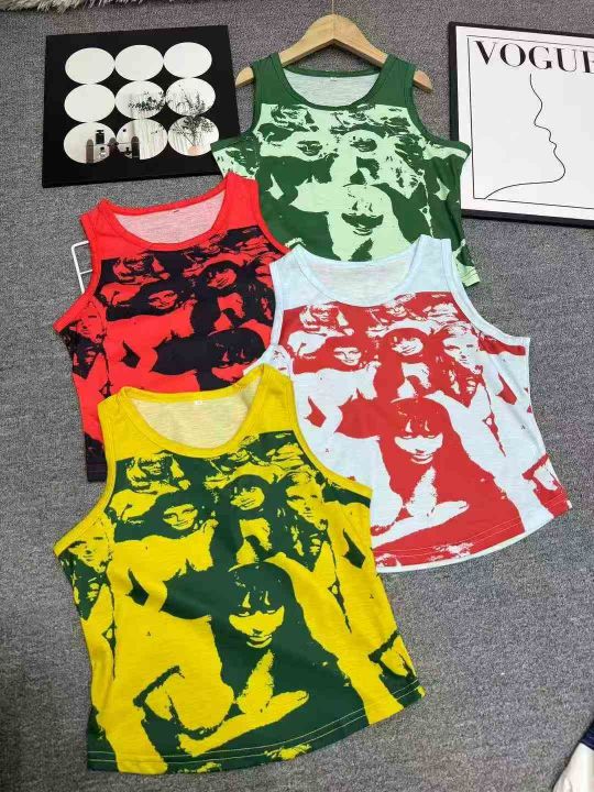 chic辣妹上衣 圆领修身短款复古撞色T恤 Y2K千禧风无袖印花背心夏,独立包装,码数XL-5XL,数量499件,全清3.8元,分货➕0.5。 货号:1323