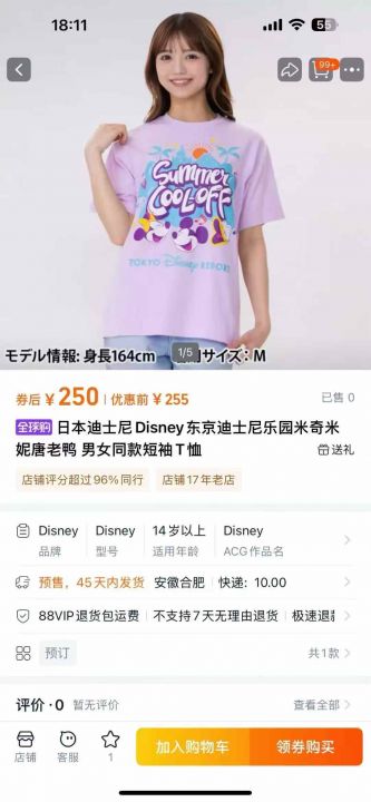 迪士尼T恤短袖1000来件。 货号:2978...