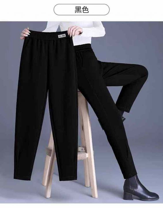 ☕️黑色加绒裤子女冬季新款大码妈妈宽松哈伦裤松紧腰显瘦休闲裤214条全清8...