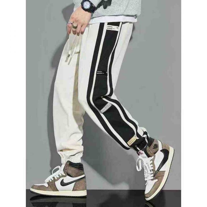 侧边条纹灯芯绒男冬季加绒潮牌宽松束脚裤子,整款三色...