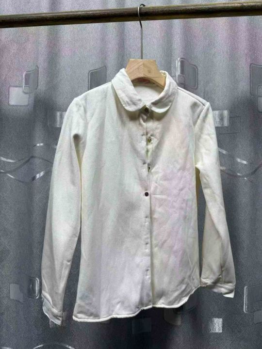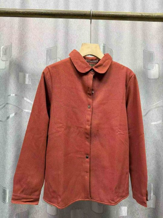 日系简约舒适加厚婴儿绒质感通勤减龄元宝领子母扣保暖长袖衬衫,面布纯棉质量好,独立包装,S - 2 x L码,380件左右,全清7.8块。 货号:1323
