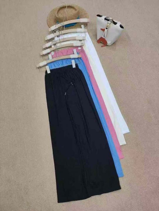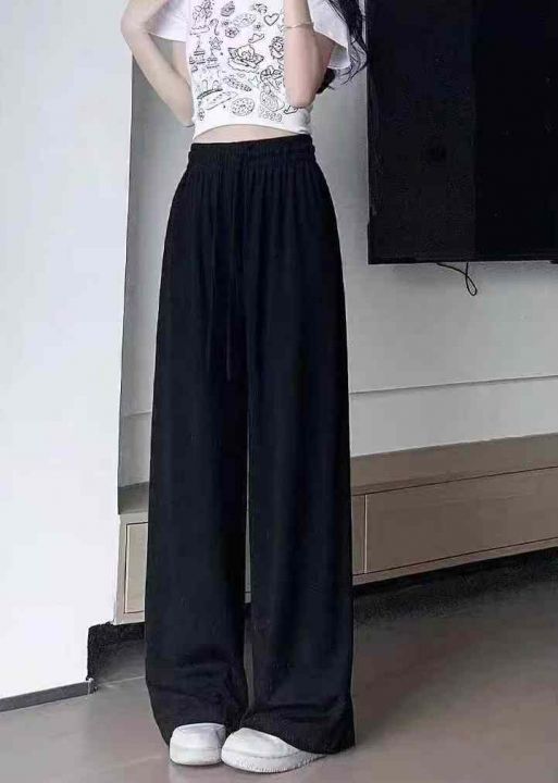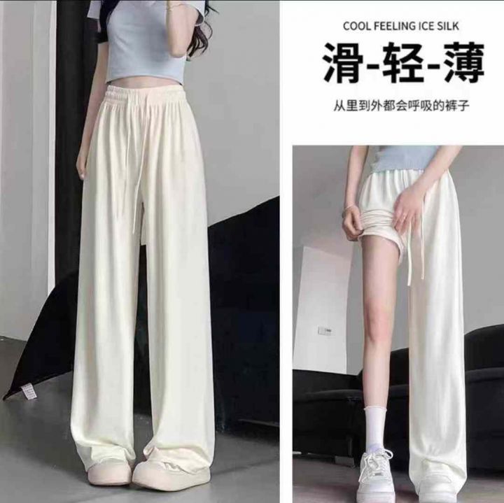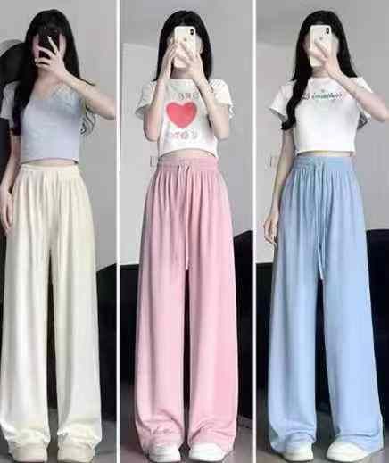 [月亮]:夏季休闲冰丝抽绳松紧腰女裤