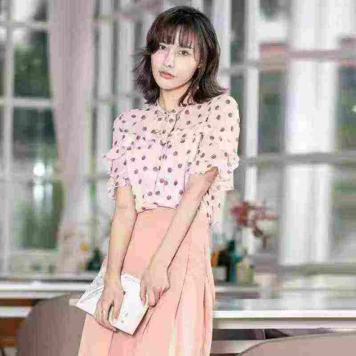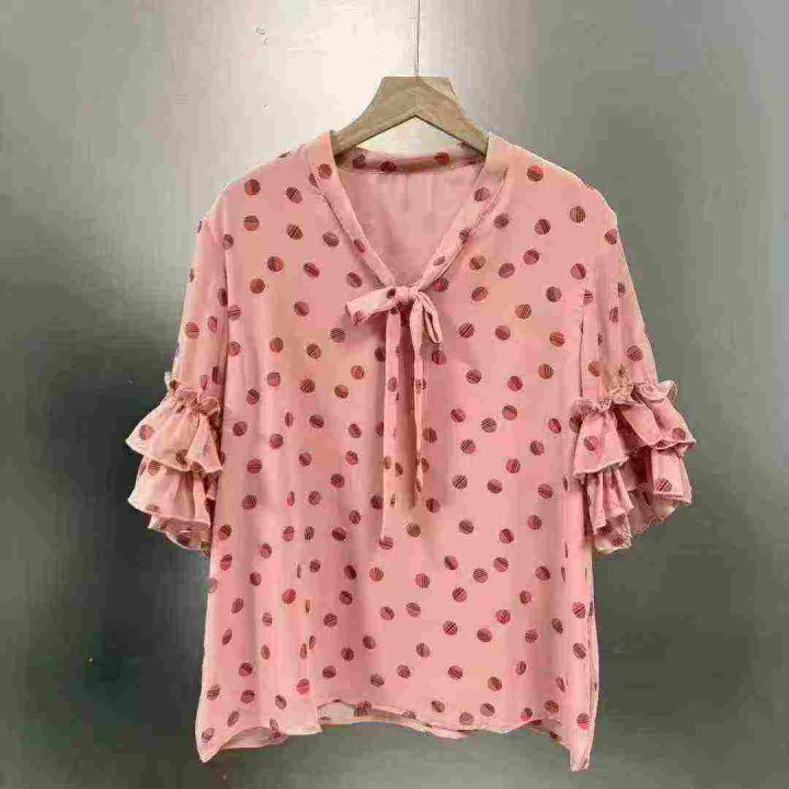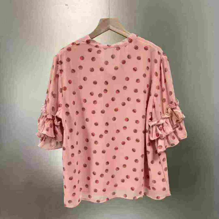 270件[红包]品牌新款时尚百搭显瘦雪纺上衣,V 领波点...