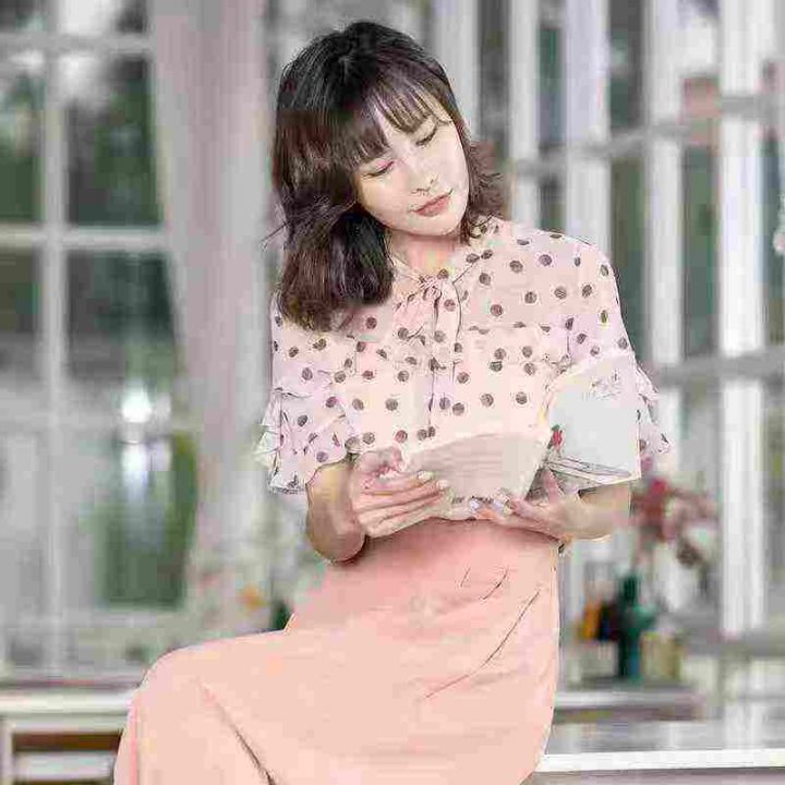 270件[红包]品牌新款时尚百搭显瘦雪纺上衣,V 领波点蝴蝶结飘带,设计感十足,模特图仅供参考,实物图为准,独立包装,码数 M—L,全清 5.8 秒杀,分货随机配货加一元