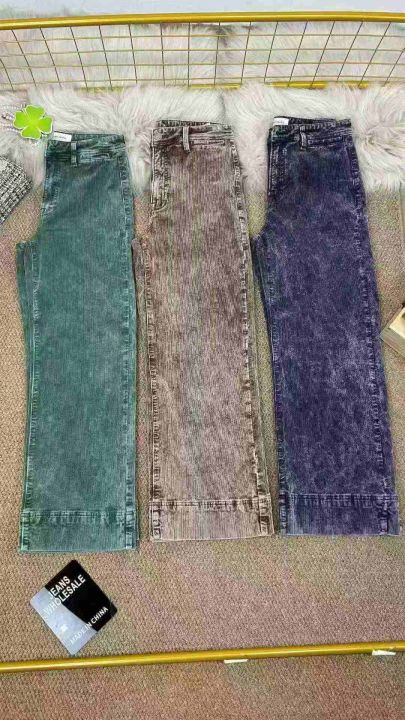 灯芯绒面料女士弹力直筒休闲阔腿裤 厚款长裤。工厂新货 欧洲订单,单款三色。总数量395条,尺码25~32码,防水袋装,三个颜色比例相差不大,厚重款 面料质感好