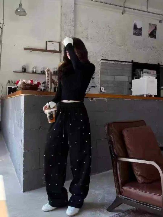 韩系重工镶钻满天星加绒束脚卫裤990件,全清10.8,分货11.8,