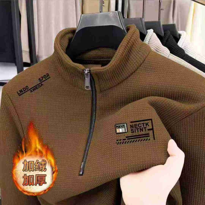 ☕️冬季男士半拉链高领保暖打底衫上衣加绒加厚打底衫...