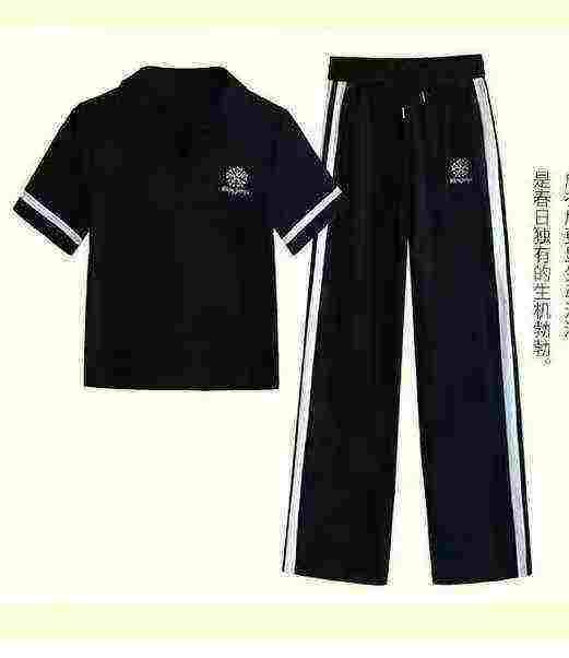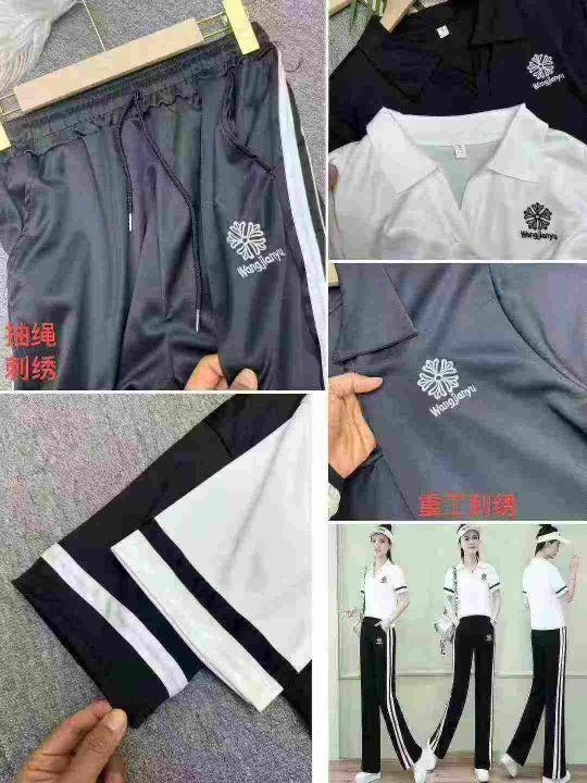 短袖运动服套裤T恤休闲两件套,独立包装,重工刺绣,码数1-6码,数量115套,大货黑色多,货号1126#56