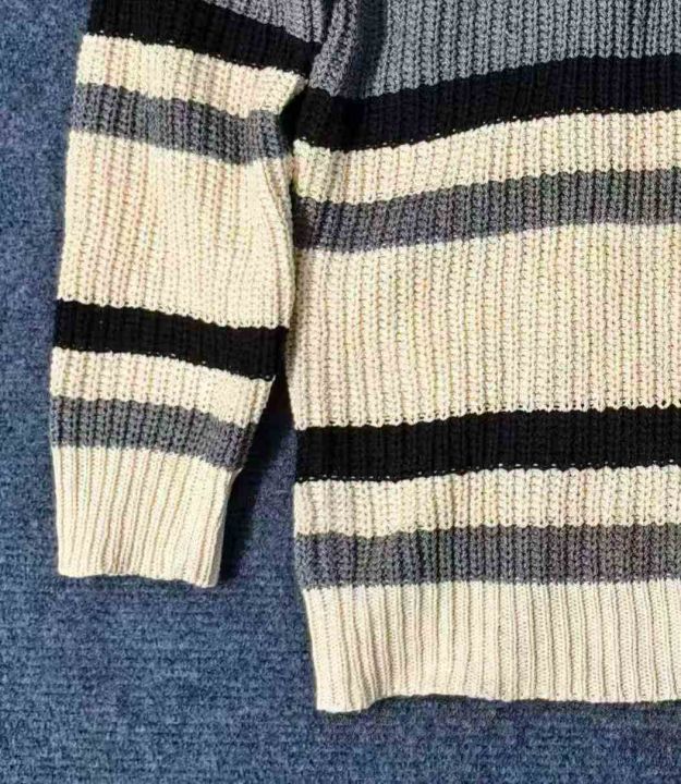 ☆8.8元,秋冬季慵懒风情侣百搭条纹宽松圆领毛衣,男女同款,100件,M-2XL,独立包装吊牌,全清8.8元