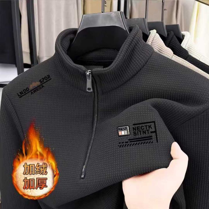 冬季男士半拉链高领保暖打底衫上衣加绒加厚打底衫45件全清11.8元,单款3色...