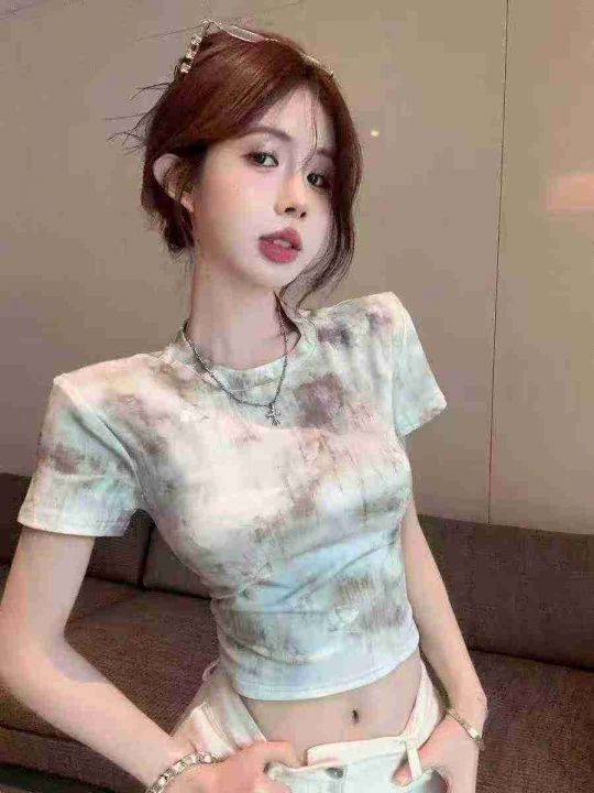 ☕️美式扎染辣妹T短袖t恤女夏季纯欲甜辣妹短款独特别致半袖710件全清7.8元...