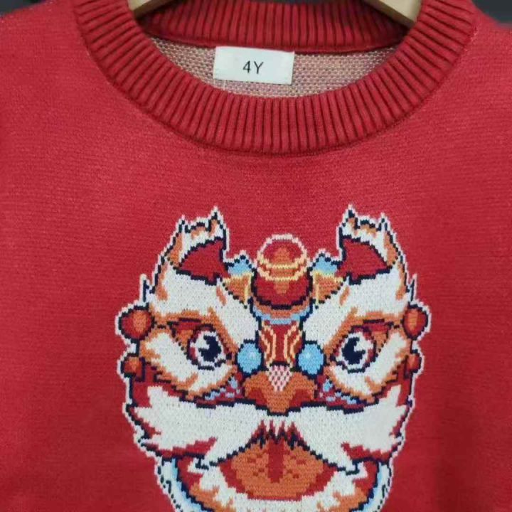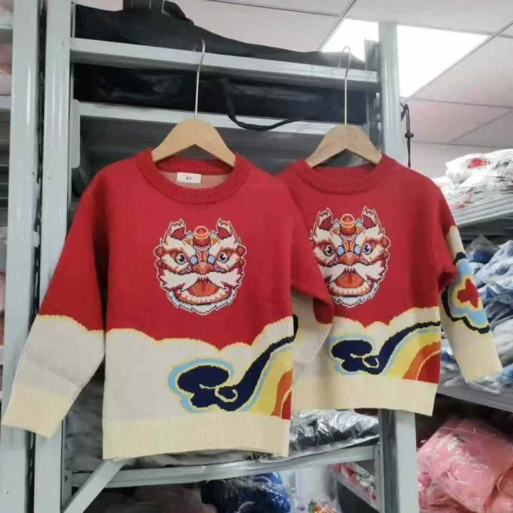 童装舞狮毛衣110-130码 50件起配6.8元欢迎分货 全清有1500件。 货号:1303
