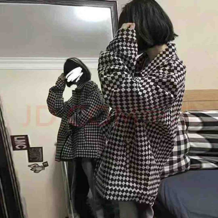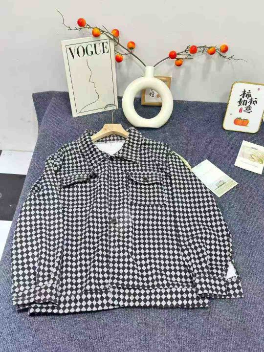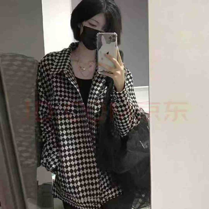 贝吉棋春秋款外套女ins美式复古棋盘格子polo领外套,数量1445件,码数m-2xl,独立包装,全清6.9元