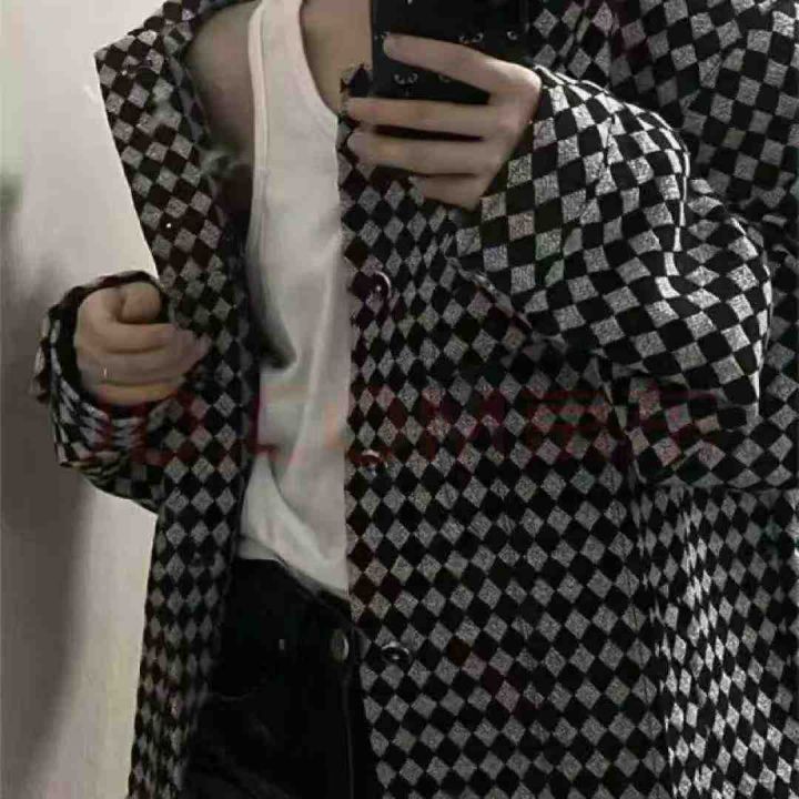 贝吉棋春秋款外套女ins美式复古棋盘格子polo领外套,...