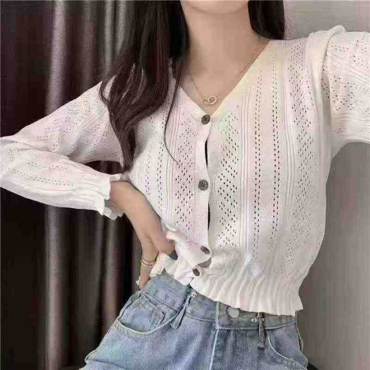 捡漏款,秋季新款木耳边设计款韩版V领镂空百搭长袖针织毛衣开衫,独立包装,单款多色,均码面料柔软舒适,100件,全清6.9元超低价秒杀!分货加一!
