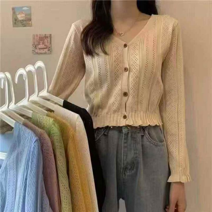 捡漏款,秋季新款木耳边设计款韩版V领镂空百搭长袖针织毛衣开衫,独立包装,单款多色,均码面料柔软舒适,100件,全清6.9元超低价秒杀!分货加一!