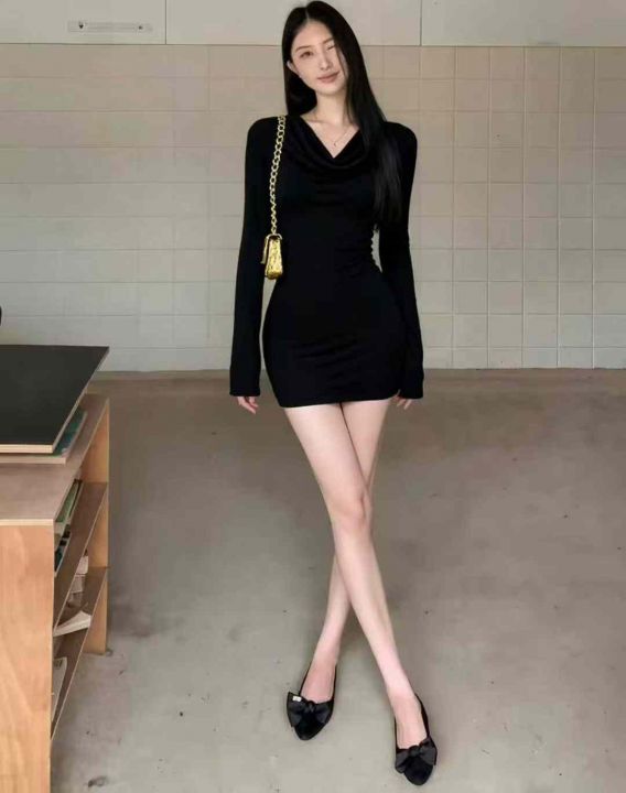秋冬新款女装百搭性感纯欲风弹力修身显瘦荡领德绒连衣裙,独立包装,码数1--4码,325件,全清5.9元超低价秒杀!分货加一!