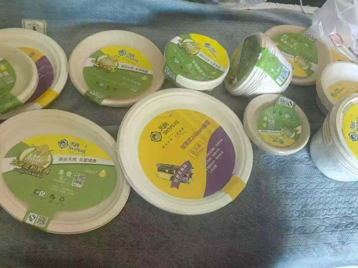 高端一次性餐盘餐碗。一共有52,000捆左右。每捆最少的6只装,最多的10只装。全部甘蔗浆和玉米淀粉健康材质。大货干净整洁原箱原件。每一捆9毛钱,能做的老板私聊。有清单