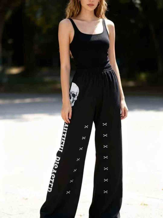 全清6.8清库存,45件外贸女装印花休闲宽松直筒长裤,...