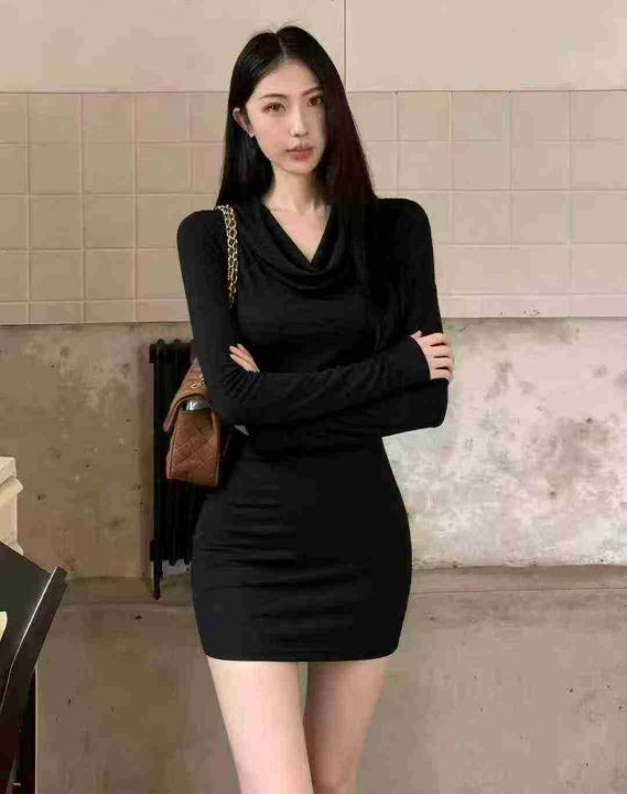 秋冬新款女装百搭性感纯欲风弹力修身显瘦荡领德绒连衣裙,独立包装,码数1--4码,325件,全清5.9元超低价秒杀!分货加一!