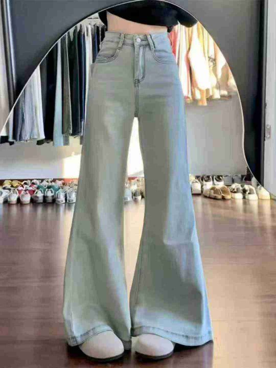 #Jeans wholesale 弯刀牛仔裤女士秋冬半松紧高腰长阔腿裤 宽松镰刀裤,单款...