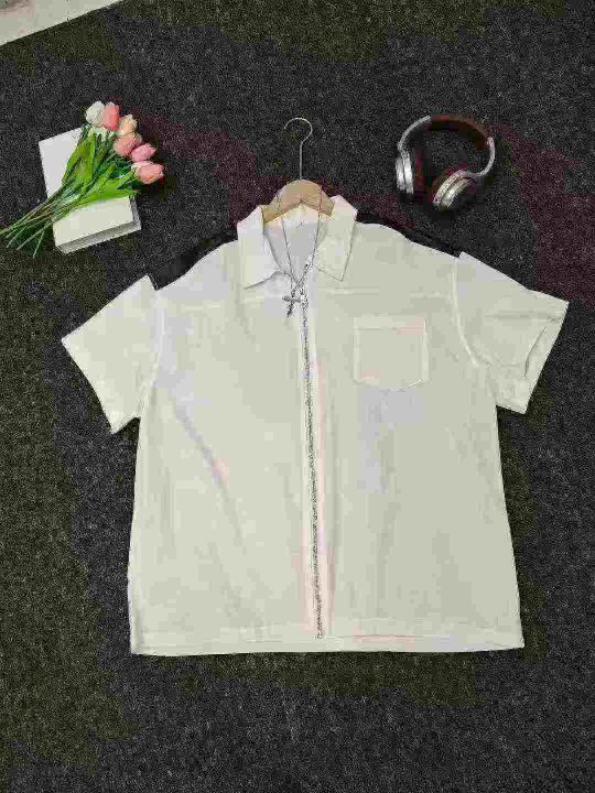 ☕️纯棉重工辣妹短袖T恤立体钉珠弧形下摆精致泡珠工艺修身显瘦气质辣妹T恤...