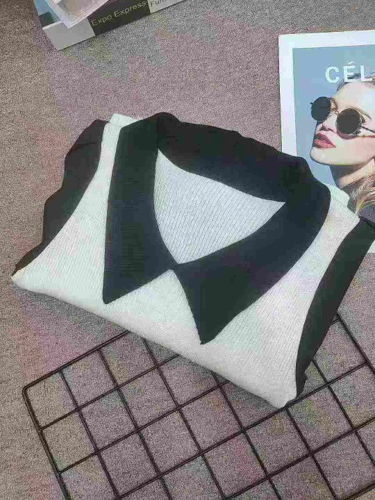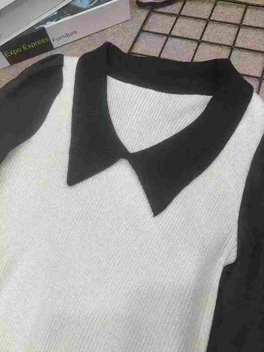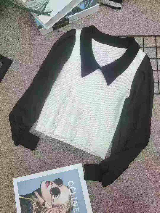 法式衬衫拼接雪纺灯笼袖设计假两件针织衫女新款V领上衣,独立包装,均码,360件,清7.8,分➕1