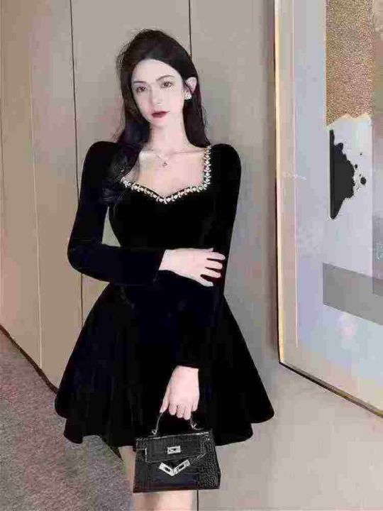 全清8.8法式复古赫本丝绒连衣裙女秋冬显瘦气质女神范高级设计感小众裙子104...