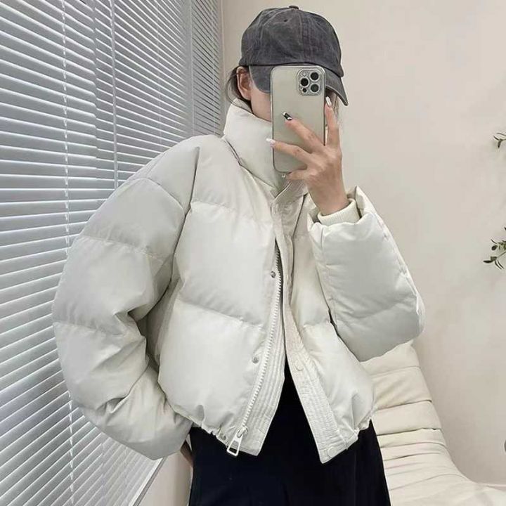 8000件免洗pu皮羽绒棉服冬季2025年新款宽松加厚防风立领短款外套[烟花][烟...