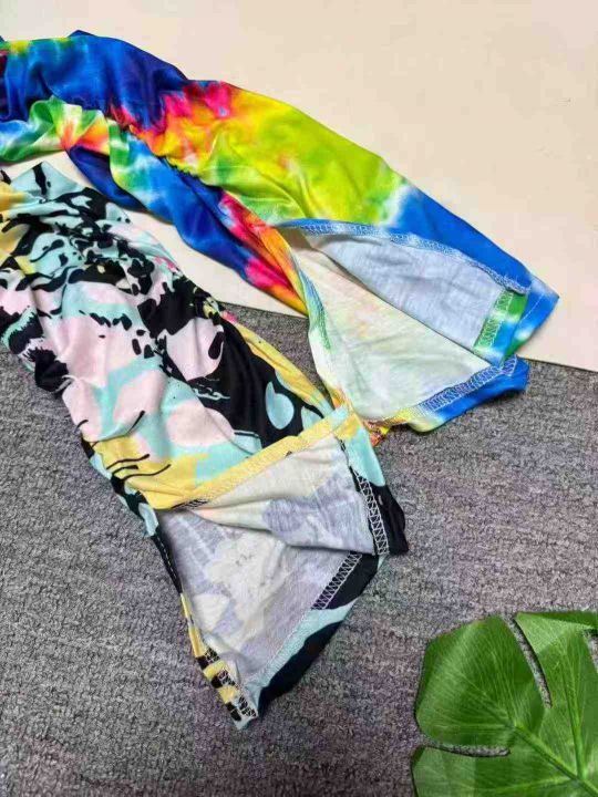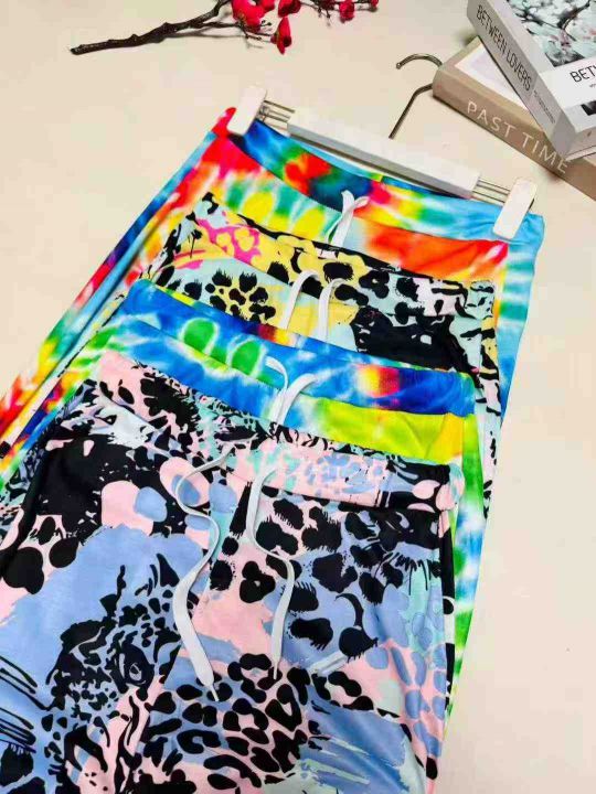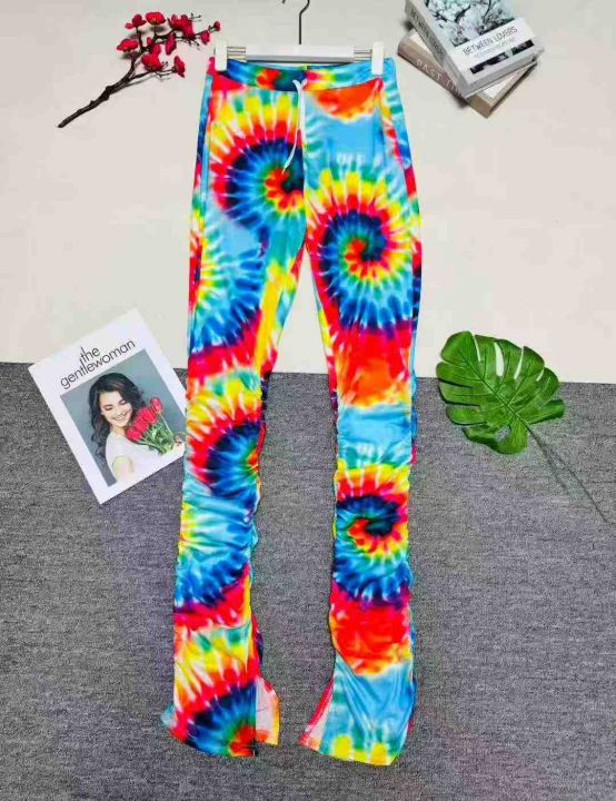 欧美时尚外穿薄款松紧腰紧身彩色印花褶皱裤,裤脚开衩设计,数量300条左右,码数:S-2XL,品质好,有独立包装。
