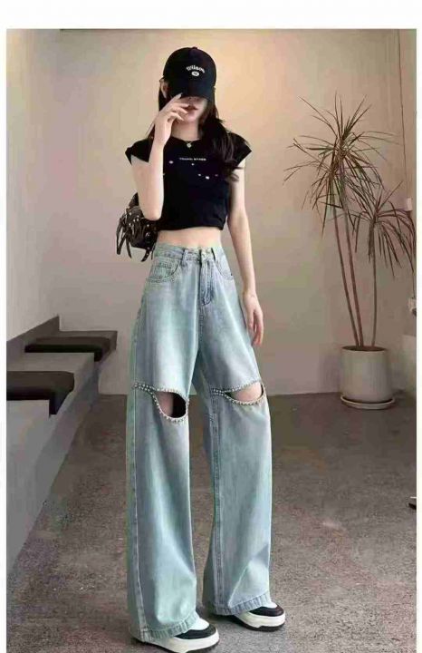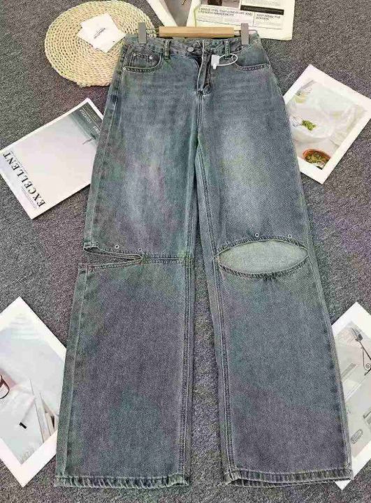 ☕️复古破洞阔腿牛仔裤女秋季宽松小个子设计感拖地裤子85条全清9.9元 ,码数S到XL,独立包装,南城高品质牛仔裤[庆祝][庆祝][庆祝]