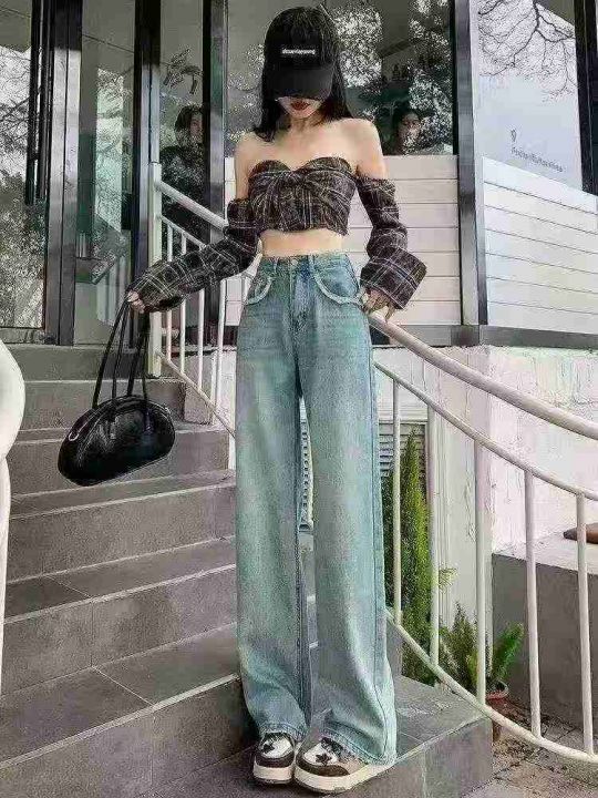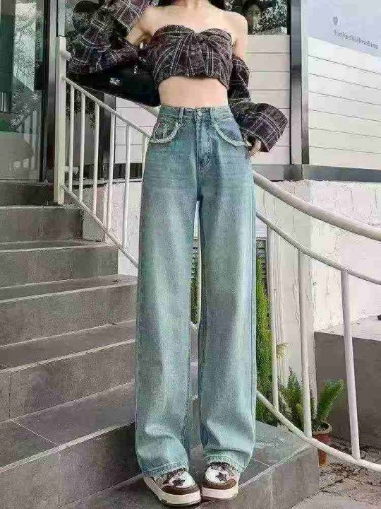 ☕️高腰毛边垂感阔腿牛仔裤280条全清14.8元 分货15.8元,码数XS到XXL,有长裤&加长裤,独立包装,辣妹牛仔阔腿裤新款复古显瘦宽松直筒牛仔拖地裤