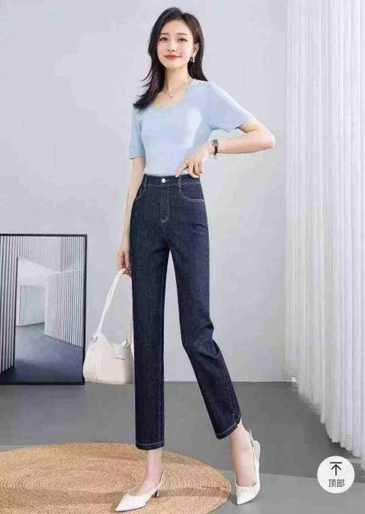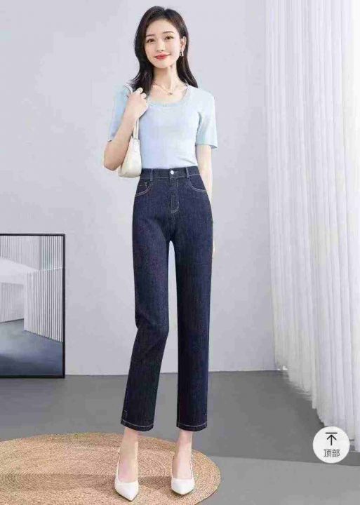 高弹力深蓝直筒牛仔裤☕️200条全清11.8元,码数S到XL,独立包装,热销夏季新款开叉女士牛仔弹力烟管牛仔裤