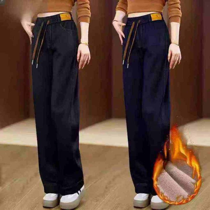☕️大码松紧腰加绒加厚牛仔裤