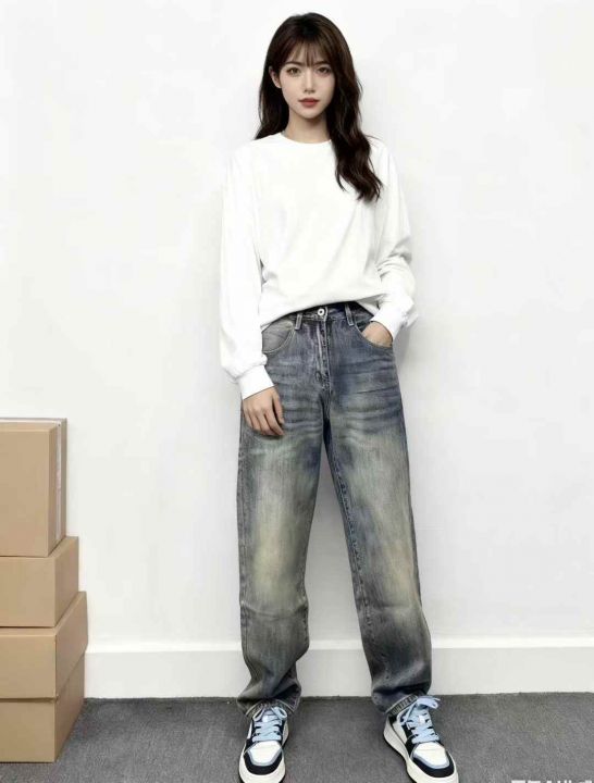 秋冬新款洗水棉网红哈伦牛仔老爹裤,独立包装带吊牌,...