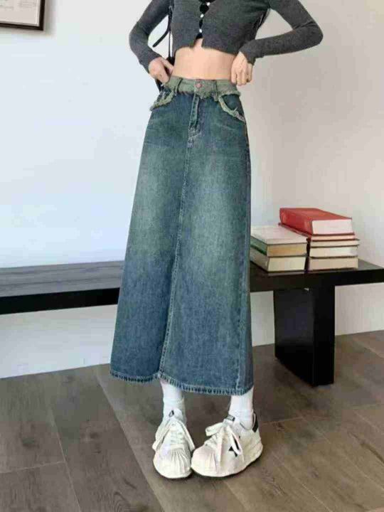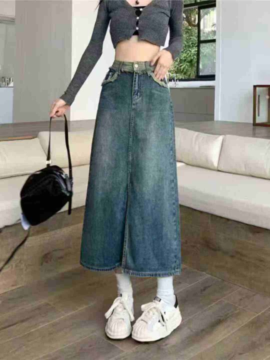 ☕️牛仔长裙夏季新款高腰设计感小众毛边开叉A字牛仔半身裙蓝色裙子女100条全清9.9元,码数XS/S,80-100斤,正品独立包装[庆祝][庆祝]