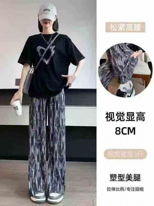 冰凉感直筒冰丝阔腿裤女夏季薄款休闲防蚊显瘦垂感扎染裤子,独立包装,码数M-2XL(2-5)数量496条,3码裤长100厘米,货号0915#54。 货号:1323
