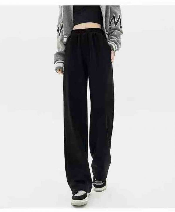 秋冬黑色运动加绒直筒休闲裤女,单款单色,面料厚实有...