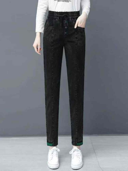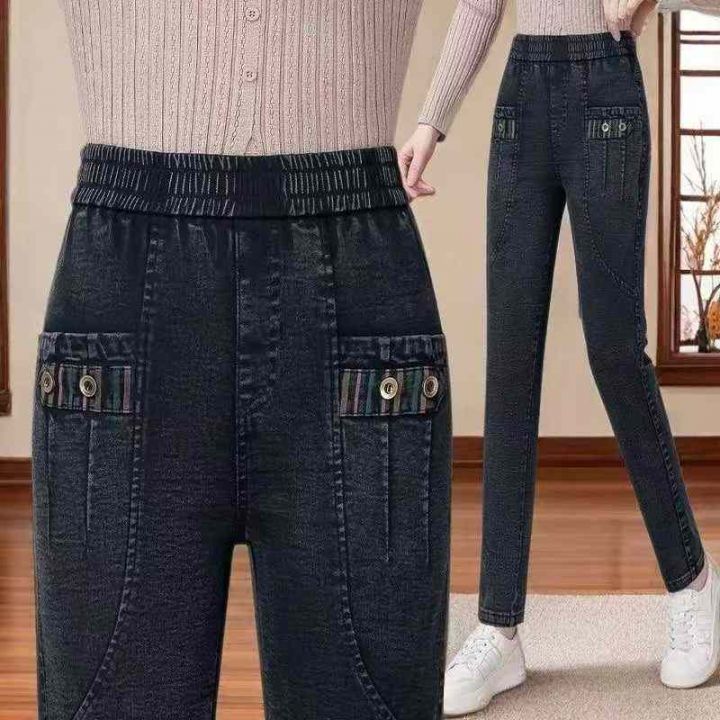 秋冬新款轻熟女装松紧腰高弹力牛仔裤,独立包装带腰卡...