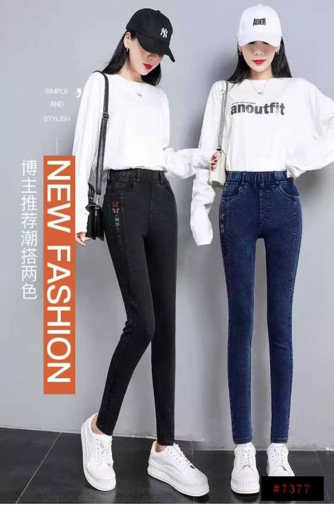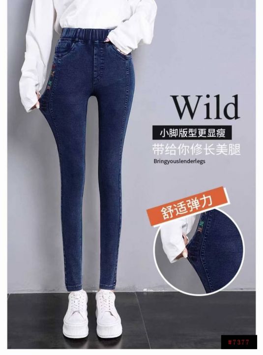 秋冬新款轻熟女装松紧腰高弹力牛仔裤,独立包装带腰卡...