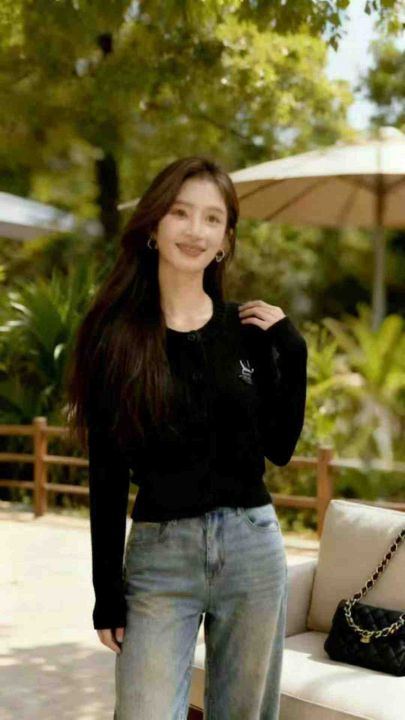 秋季新品刺绣小标韩系温柔风外搭别致高级感针织毛衣开...