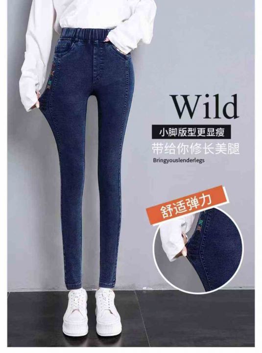 秋冬新款轻熟女装松紧腰高弹力牛仔裤,独立包装带腰卡...