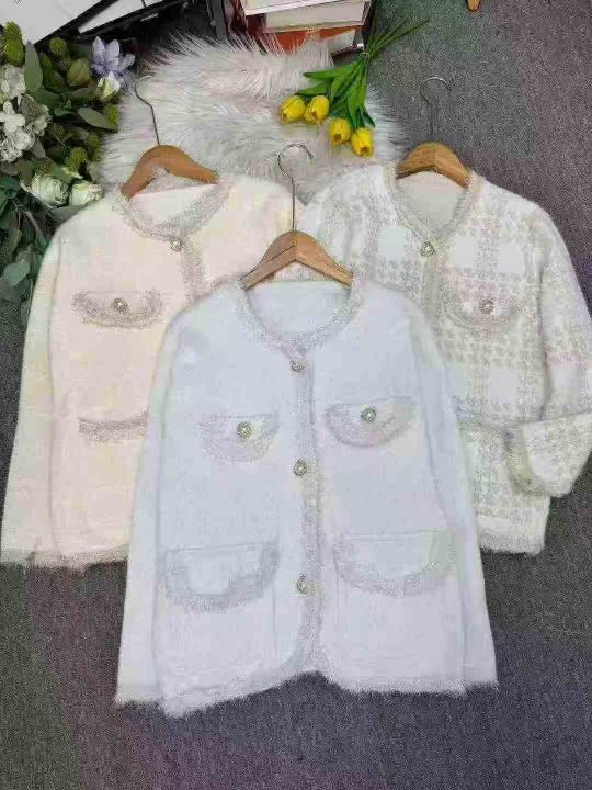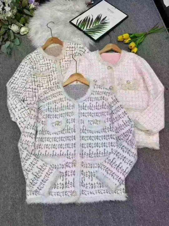 秋冬新款法式高级感名媛小香风宽松大板加厚慵懒风毛衣开衫,独立包装,均码...