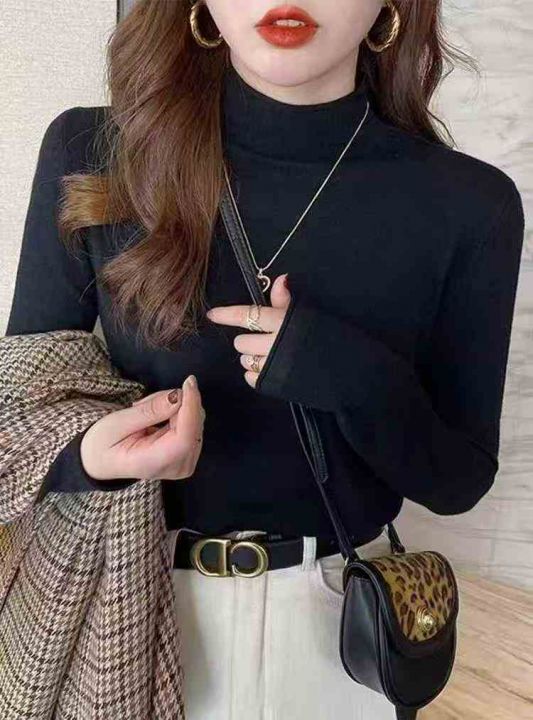 秋冬秋款净版简约百搭半高领打底外穿包芯纱套头毛衣,...