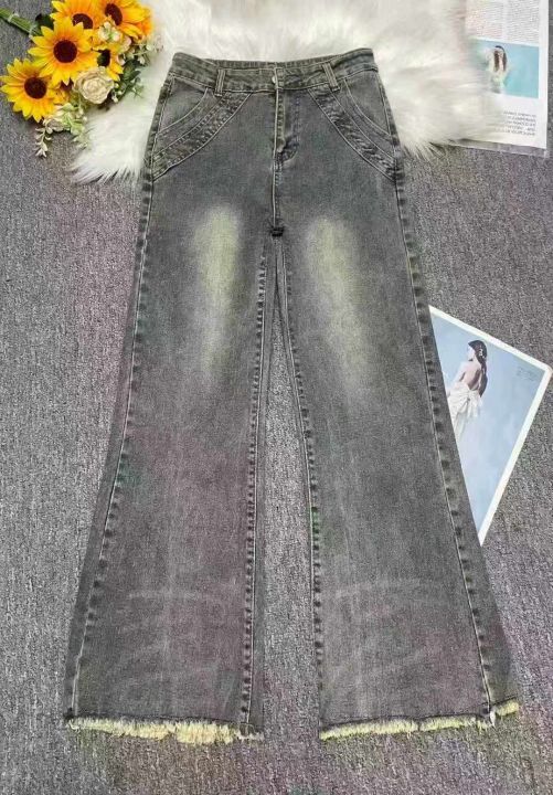 春秋新款弹力网红爆款复古洗水棉宽松阔腿设计感显瘦喇叭马蹄牛仔裤,独立包...