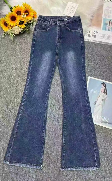 秋冬新款高弹力修身显瘦洗水棉微喇叭毛边牛仔裤,独立包装带吊牌,码数XS--...