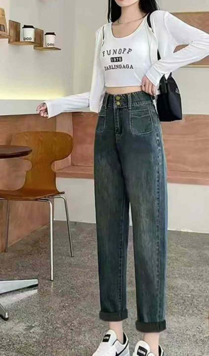 秋季新品复古蓝网红牛仔老爹哈伦裤,独立包装带吊牌,...