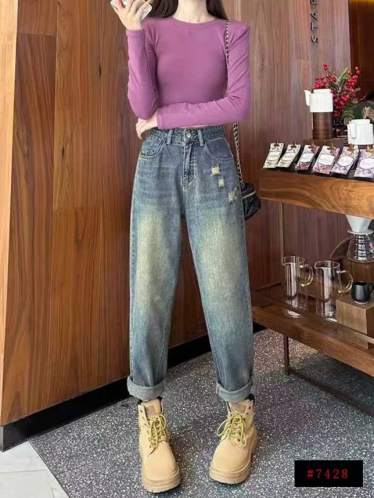 秋冬新款复古洗水棉大码女装哈伦牛仔老爹裤,独立包装...