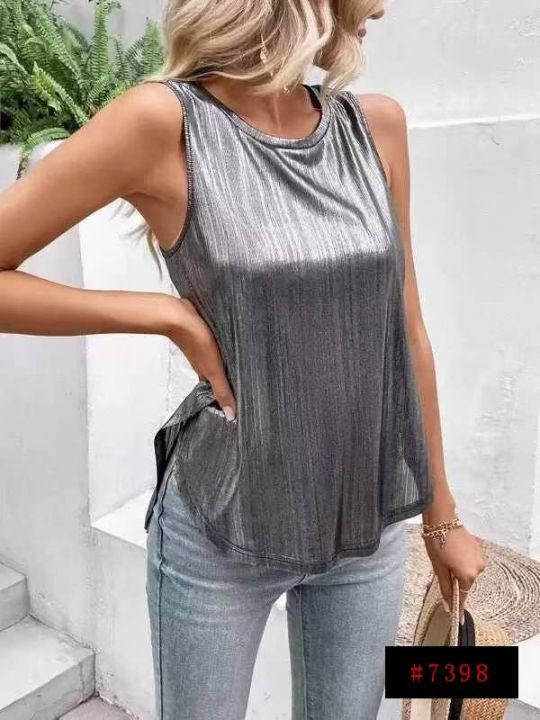欧美女装裙褶皱纯色吊带/亮面女士T恤 上衣,数量 215 ...