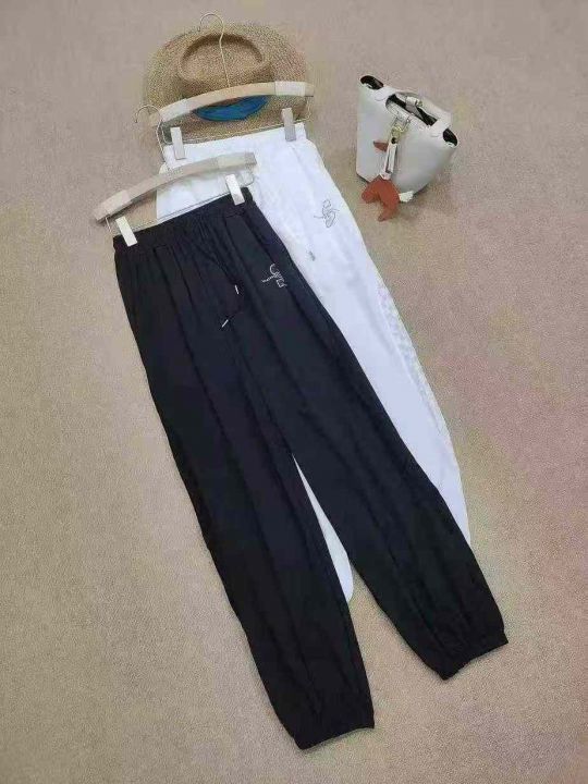 [月亮]:网纱镂空拼接/束脚抽绳休闲裤